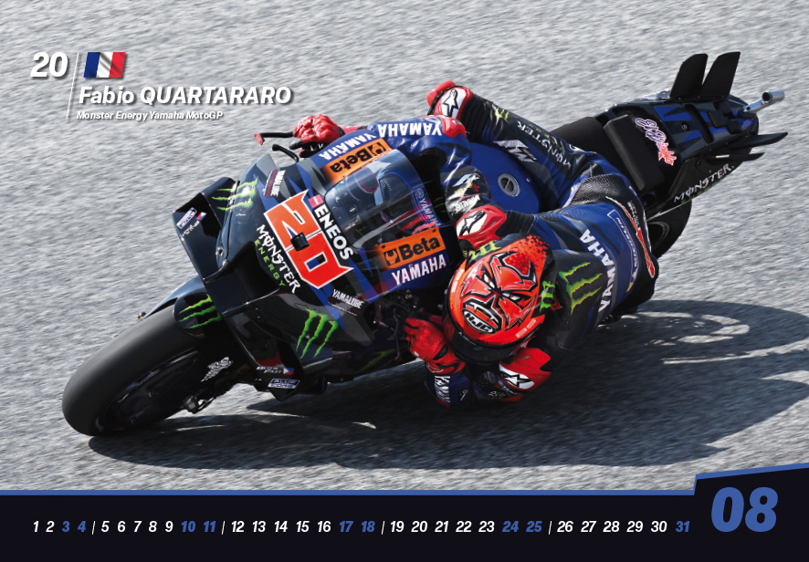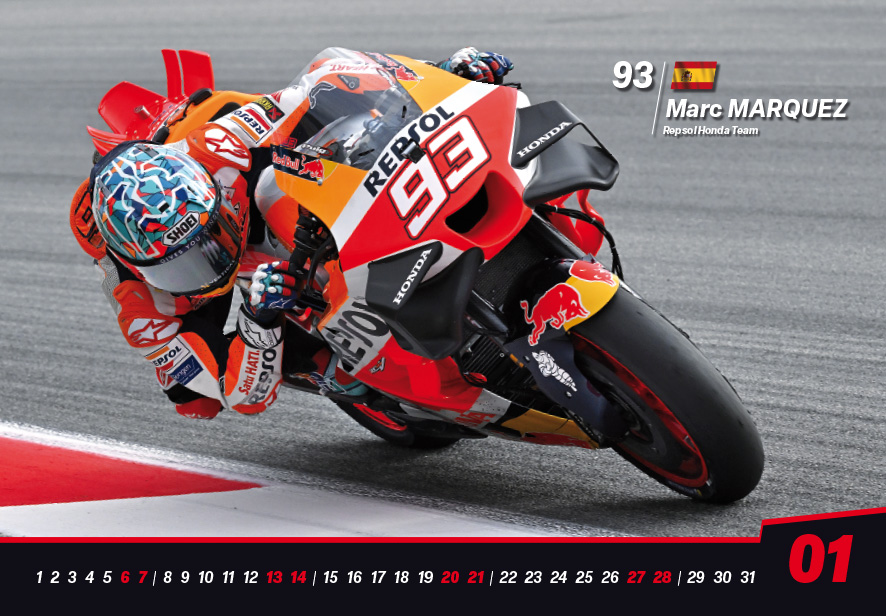 Za jednou motocyklovou závodní sezónou dveře pomalu zavíráme, a byť se to třeba nezdá, tak té následující zároveň dveře i pomalu otevíráme. A právě v tento chmurný podzimní čas již tradičně přichází k motocyklovému fanouškovi tištěná podoba nástěnného 13-ti stránkového kalendáře MotoGP o velikosti 46 x 32 cm, který se může krásně vyjímat klidně i ve Vašem pokoji, kanceláři, pracovně, dílně či garáži, a to právě po celou následující sezónu 2024.